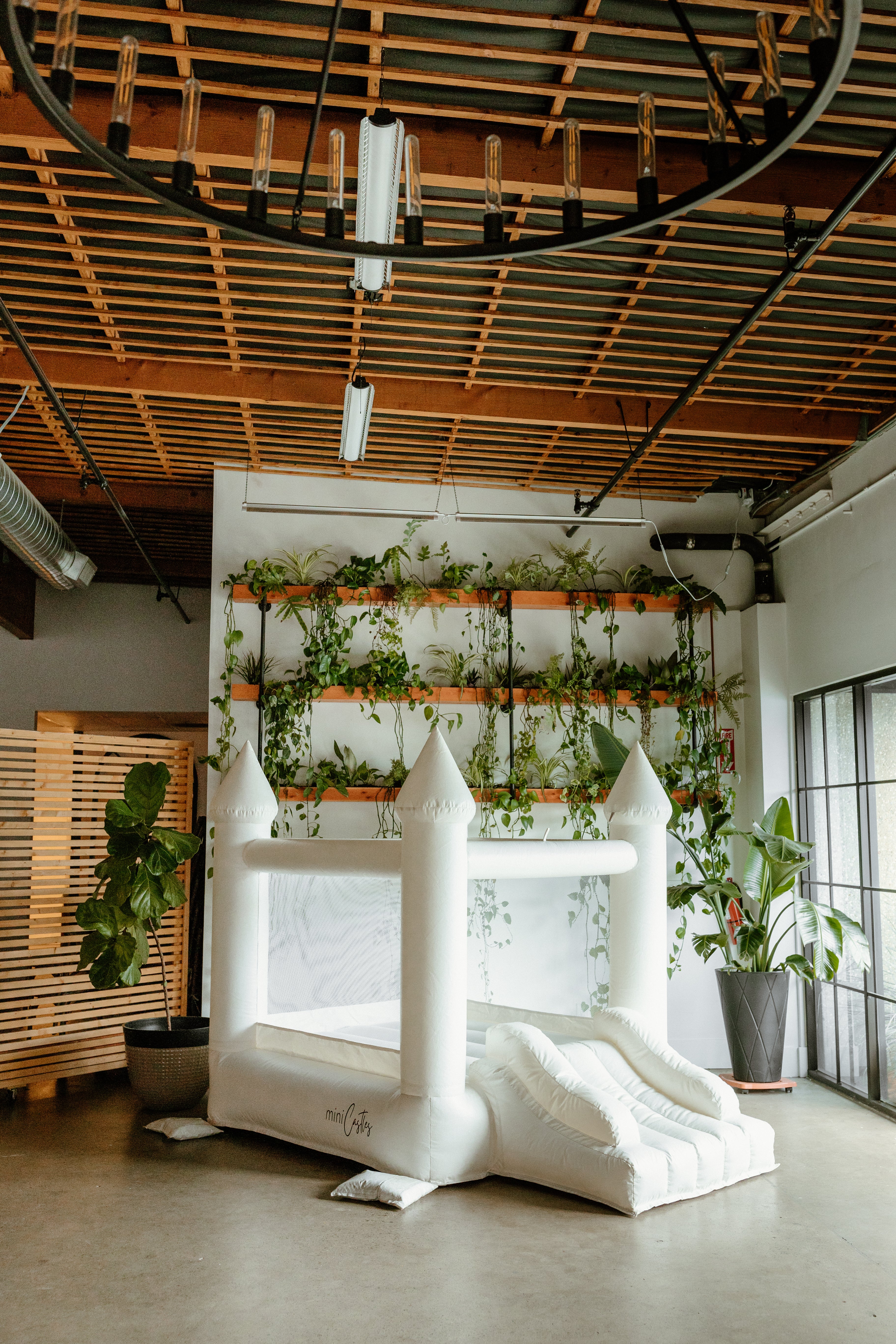 Image is for promotional purposes and not to be used as a guide for set-up. Please read our post titled “How To Set-Up Your Bounce House Indoors”, for details.